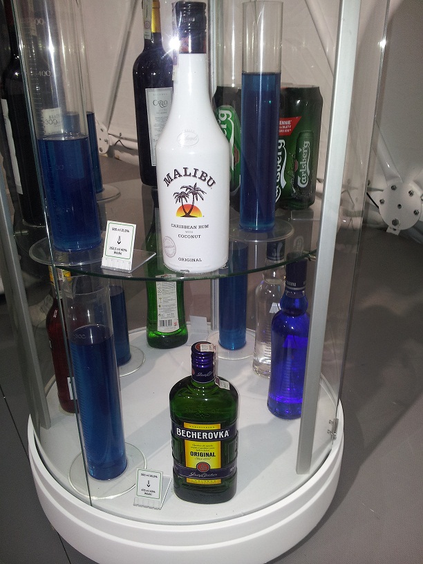 Przy użyciu alkogogli możemy sprawdzić jak będziemy się zachowywać po spożyciu alkoholu. Obok postawiono gablotę z różnymi rodzajami alkoholu (w tym z naszą Beherovką) i zobaczyć ile czystego alkoholu mieści w sobie pół litra naszego ulubionego trunku.