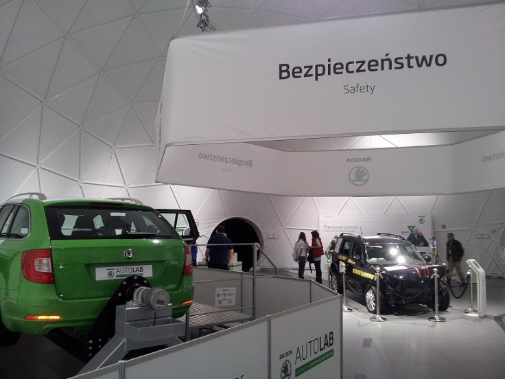 Cały Autolab został podzielony na różne strefy. Pierwsza to prezentacja dwóch modeli Skody, m.in. najnowszego modelu Citigo. Następna strefa to Bezpieczeństwo, gdzie możesz skorzystać z symulatorów zderzenia oraz dachowania. Wielka Octavia zawieszona w powietrzu obraca się wokół własnej osi, podczas gdy ty siedzisz w środku przypięty tylko pasami. Niesamowite uczucie. W pierwszej chwili ogarnął mnie atak śmiechu, ale później zdałem sobie sprawę z tego, że nigdy w życiu nie chciałbym przeżyć tego na żywo. Zawsze zapinajcie pasy, one na serio ratują życie.