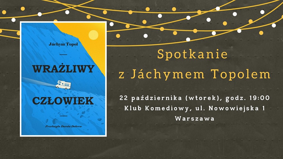 Serdecznie zapraszamy na spotkanie z wybitnym czeskim pisarzem, Jachymem Topolem, które odbędzie się 22 października o godz. 19:00 w Klubie Komediowym (ul. Nowowiejska 1).